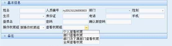 查看权限分配:分四个查看等级:个人查看(只能看见自己录入的信息)、部门查看(只能看见所在部门录入的信息)、部门及下属部门查看、全局查看(查看所有录入信息)