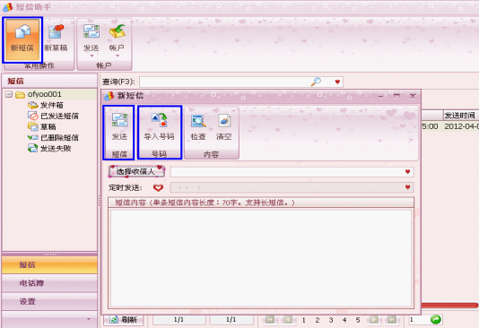 第三步:如何灵活的给会员发送短信?点击“新短信”,可以对系统数据里的会员手机号码发送短信,也可以从TXT文档导入手机号码发送短信,点击发送即完成操作。如下图: