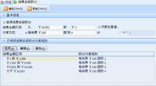 3、按照不同的商品或者商品类型设置不同的积分规则:根据商品类型的成本利润不同,可以设置不同的积分获得规则。如A类商品每消费100元积1分;B类商品每消费100元积2分等等。
