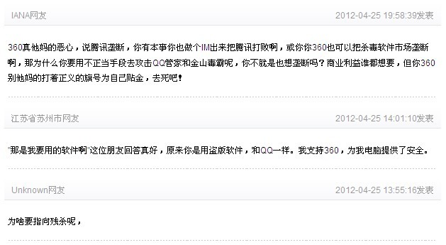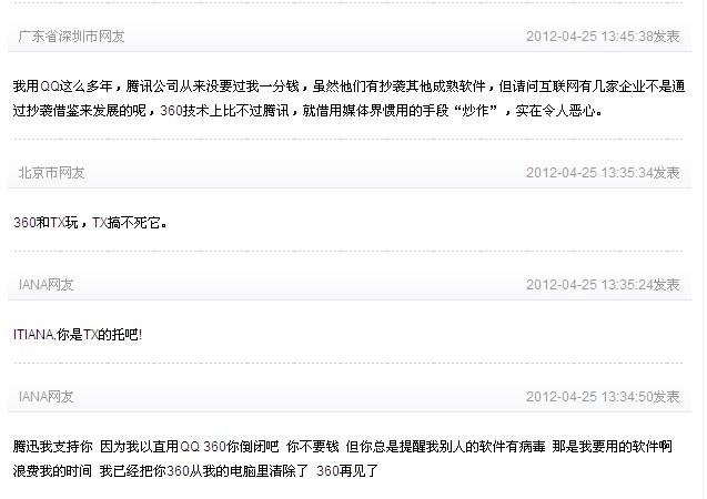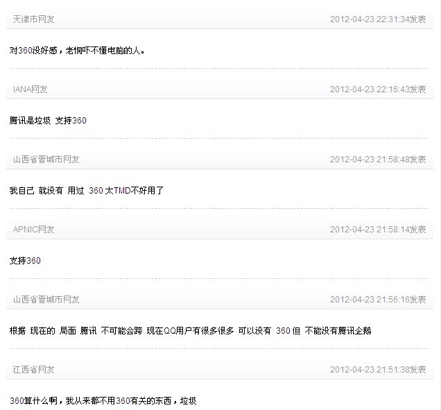 对于360和腾讯的这场大战,我们来看看各网友的观点: