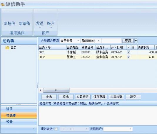 给非会员发送短信:可从TXT文档,将手机号码导入到系统中,发送短信。