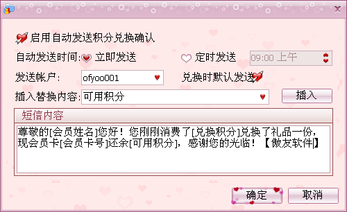 勾选启用自动发送积分兑换确认选项后,当会员进行积分兑换时,系统会自动给会员发送一条提醒短信。