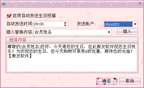 勾选启用自动发送生日祝福选项后,当会员生日时,系统会自动给会员发送一条祝福短信。