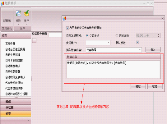 第五步:在常用功能-短信 这里设置,发放代金券后自动发送到用户手机。(此步骤也可省略)