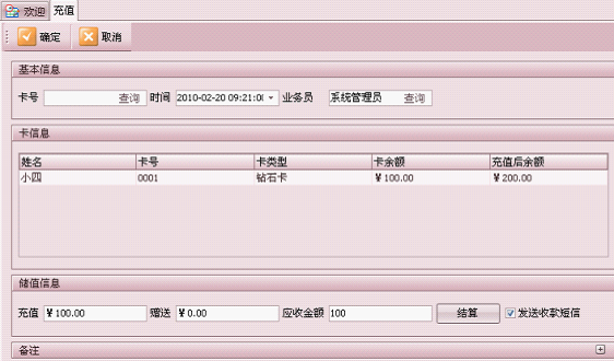 2、储值卡结算,是指该会员卡中有余额时,才会显示出来,如下图: