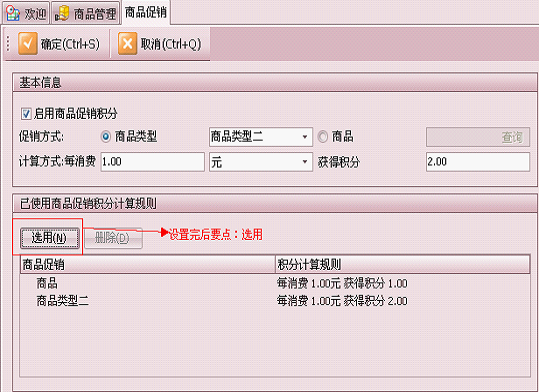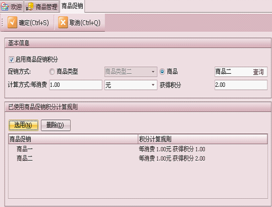 A:按商品类型 指不同的商品类型可以不同积分,比如买商品这个大类的商品,每一元可以积1分,消费商品类型二下的商品,每一元可以积2分,如图设置: