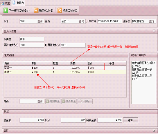 第二步:接下来,新消费,不同的积分规则会在右边注释出来。以下图片以按单个商品不同积分来举列