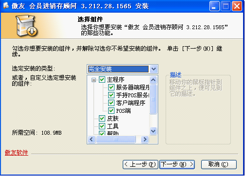 只需要一台电脑(单店)使用傲友软件,本机既为服务器端也为客户端 [完全安装],必须选择安装服务器端程序、客户端程序、数据库。