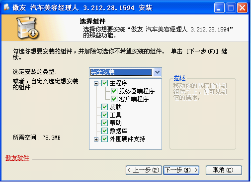 只需要一台电脑(单店)使用傲友软件,本机既为服务器端也为客户端 [完全安装],必须选择安装服务器端程序、客户端程序、数据库。